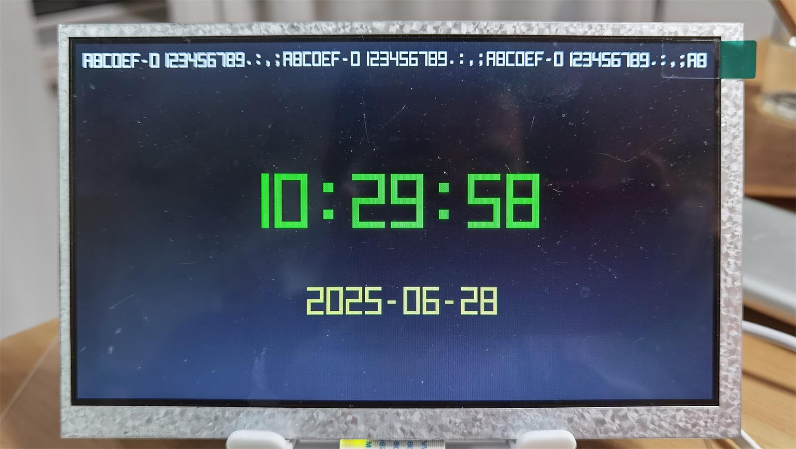 该字库的尺寸可以是8x16,12x24以及16x32,经过1~4倍放大,放大效果不会失真,该范例使用12x24点,用于7寸800x480液晶屏,实际效果:Select_Font_Height_WxN_HxN_ChromaKey_Alignment(24, 4, 4, 0, 0);